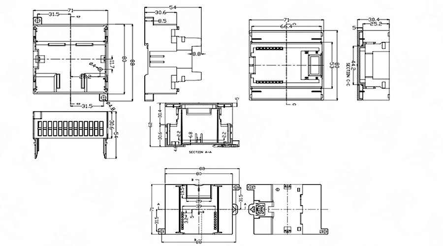 產(chǎn)品用途:廣泛應(yīng)用于電子行業(yè)中各種PLC模塊電路、控制器單元、配電器模塊等 。具有完全絕緣性保護、散熱性良好等特點。均采用ABS/PC原料生產(chǎn),符合ROHS環(huán)保標準、性能好、耐高溫,不加入任何再生料??筛鶕?jù)客戶要求重新開模具。