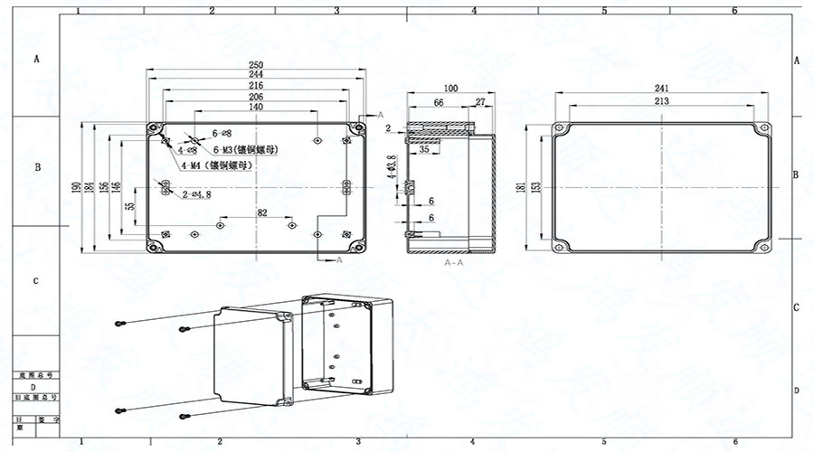 簡要說明:防水盒因地域差異和針對作用范圍不同名稱也不一樣,用于工業(yè)的有防水接線盒、防水儀表盒、防水光伏接線盒等,適用于室內(nèi)、外電氣、通信、消防設(shè)施、鋼鐵冶煉、石油化工、電子、電力、鐵路、建筑工地、礦山、采礦場、機(jī)場、賓館、大型工廠、船舶、碼頭設(shè)備、污水處理設(shè)施、環(huán)境公害設(shè)施等。